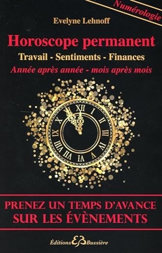Pour la première fois, un livre relatif à l'horoscope numérologique permanent fait son apparition. En lisant cet ouvrage, vous prendrez un temps d'avance sur les évènements. Ce guide est le compagnon idéal pour vous aider à repérer les périodes propices pour trouver un emploi, rencontrer l'âme sœur, agrandir la famille, acheter ou vendre un bien, faire fructifier votre argent, solliciter une aide ou un prêt, gagner aux jeux de hasard.... Découvrez année par année et mois par mois les temps forts tant sur le plan personnel que mondial. En prime vous pourrez découvrir le portrait de l'élu de votre cœur. Avec seulement votre jour et votre mois de naissance, vous pouvez avoir un aperçu des événements susceptibles de se produire, chaque année, chaque mois.